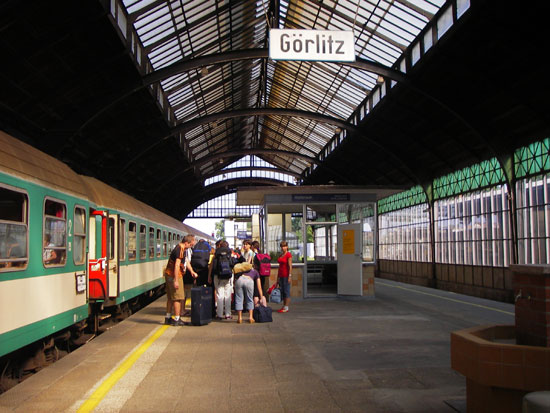 Kurz nach 13:00 war ich aufm Bahnhof. Die Schlangen vor den Fahrkartenverkäufen waren lang. Um 13:20 sollte der Zug fahren und ich machte mir schon Sorgen. Am internationalen Schalter ging es doch noch so voran und 13:15 hatte ich mein Ticket. Noch ein Brötchen und Powerade zum Frühstück im Zug. Der Zug nach Görlitz von Bahnsteig 3, gut gefüllt. Ich fand ’nen Platz und war zufrieden. Ich machte mir nur etwas Sorgen wegen des Ziels „Zgorzelec“ auf meinem Ticket. Ich wusste nicht, dass dies der polnische Name für Görlitz ist. Jemand klärte mich auf.