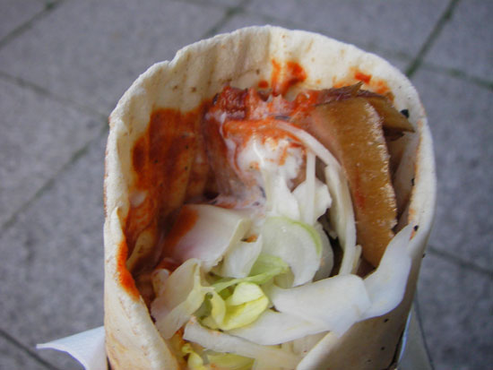 Gene 21:00 ging ich mal eine Runde, genoss die perfekte Temperatur am Abend. Ein Dürum bei Angelos Pizza kam €2 und hate die richtige kleine Größe.