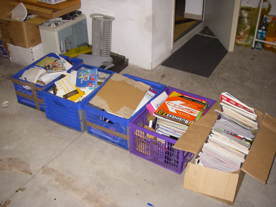 Schön ausgeschlafen. Mit gefülltem Magen musste ich mal wieder in der Garage den Plunderberg abtragen. 4 Kisten wurden mit Karton und Papier gefüllt, eine ganze Kiste mit Zeitungen und etwas Plastik kommen auch ins Recycling