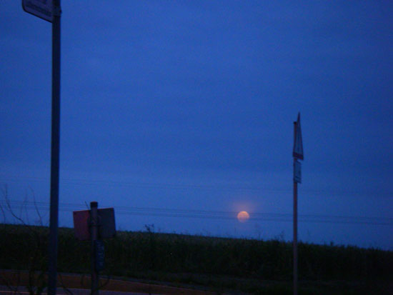Heute ging’s mal nicht ins Starlight sondern ins Del Sol auf der Beckerstraße. Das wurde mir vergangene Woche empfohlen. Es war auch wirklich gut. Die Veranstaltung ist wohl nur alle zwei Wochen, das nächste Mal am 14.7.. Viele Leute in meinem Alter, alles locker und nett. Nach 4 hatten die meisten und ich dann auch genug. Auf der Rückfahrt ging der Mond auf. Der schien so riesig – leider während der Fahrt nicht ablichtbar.