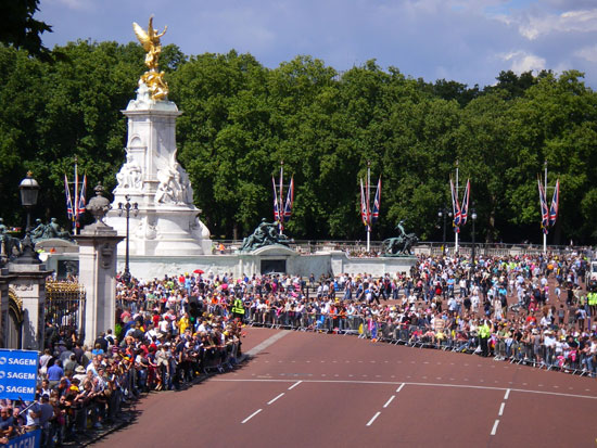Das Frühstück gab’s bei Burger King. Dann setzte ich mich für mehr als 1h ins Internet und checkte den Start der Tour de France. Ich fuhr nach Westminster und spazierte die Strecke entlang. Massen von Leuten standen bereits entlang der Straße. Die ersten Radler fuhren sich warm.
