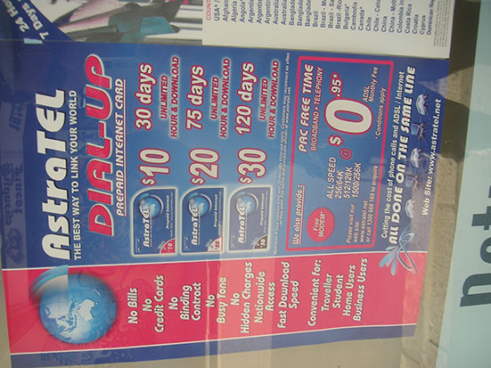 Den wichtigen Internetzugang besorgte ich im Internet-Café und nun sitze ich am Laptop — mit Dial-up. Mal wieder auf dem Boden der Tatsachen und einstelligen Download-Raten. Ich kann dennoch damit arbeiten und habe das meiste, was ich brauche…außer mehr Photos des Tages…