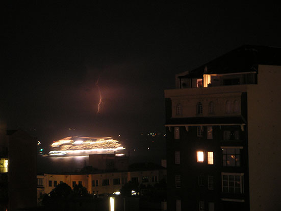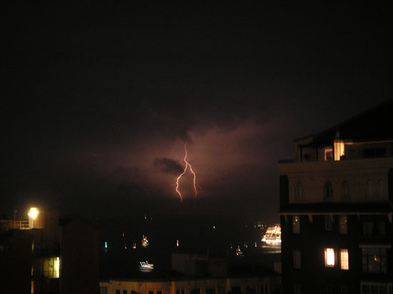 Am Tisch klappert die Tastatur und dann krachte es draussen, wie bei einem Feuerwerk. Ich suchte die Raketen aber das ganze Blitzen und Donnern kam aus der Natur. Ein supercooles Gewitter auf dem Meer für eine Lightshow fast wie zu Silvester. Die orangenen Blitze zuckten durch die Wolken und kaum zur Erde.