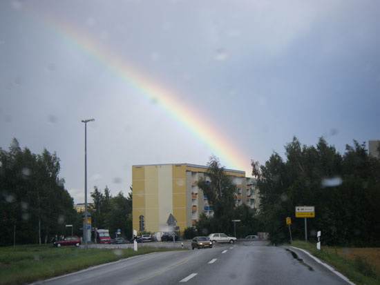 Aufstehen gegen 15:00. Mac arbeit – Russland online. Regenbogen geknippst, mit zu Plus. Abendessen von vor 2 Tagen. Weiter am Mac. Del Sol, ganz OK – irgendwie kennt man’s. Vor 5 wieder zu Hause. 8:40 Schluss.