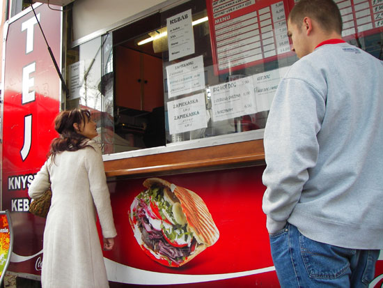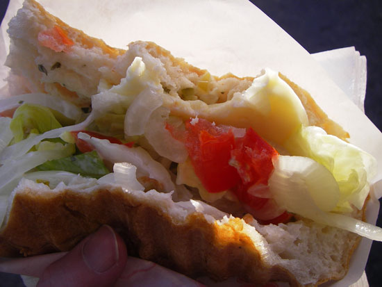 Dann im Zug war mein Platz besetzt aber nebenan noch frei. In der ersten Klasse reist man etwas besser. Die €15 mehr (44 statt 29) war das aber nicht wert. In Berlin Ostbahnhof hatte ich trotz verspäteter Ankunft auch viel Zeit. Ein vegetarisches Pita schmeckte gut.