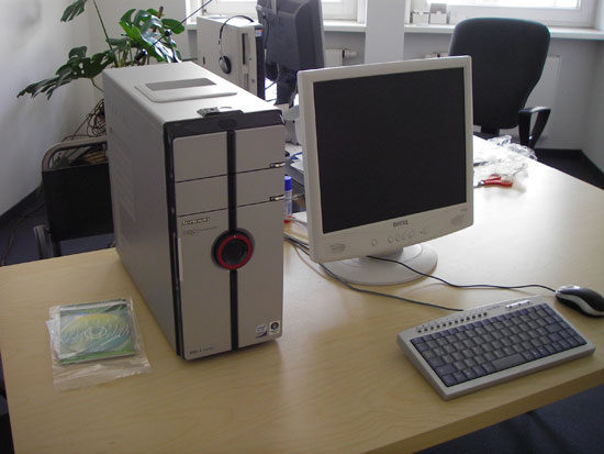 Die EX-V8 probierte ich natürlich gleich aus. Der PC wurde auch angeschlossen. Der Lonovo kam €499 und wurde mit ein paar großen Lautsprechern und natürlich auch Vista ausgeliefert. Das installierten wir dann. Schön bunt aber immer noch Windows. Besonders cool ist der HAL9000 Look mit einem großen leuchtendem Knopf an der Vordersteite. Da kann man von grün (low power) über blau (auto) auch die volle CPU power mit einem pusierendem roten Licht aufdrehen. Noch redet er nicht – schön leise ist er.