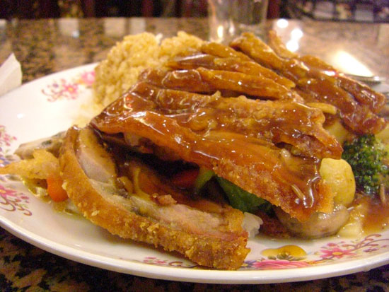 Ich ging nochmal in der Galeria Kaufhof, holte mir eine Menge Essereien. Dann in Roter Turm aß ich ’ne chinesische Ente.