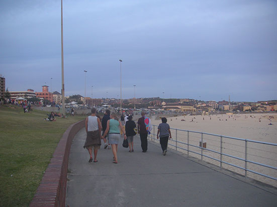 Gegen Abend fuhr ich zu Bondi Beach — rechtzeitig zum Sonnenuntergang. Da war ich das letzte Mal vor einer Woche. Wieder waren viele Leute unterwegs.