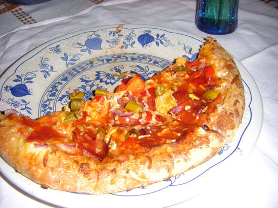 Um 21:00 fuhr ich mit der Bahn nach Hause, wurde an der Tankstelle abgeholt. Dann eine Pizza mit extra Pepperoni und Käse. Sehr gut.