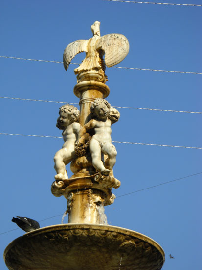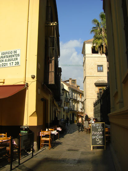 So trennten wir uns heftig. Ich schlenderte durch die Straßen. Das Wetter wieder schön. Viele Straßencafés und Läden waren geöffnet, so manche auch geschlossen. Ich setzte mich hin, bestellte Cortado, Cola und Bocadillo. Am Nachbartisch aß jemand was aus ’ner Schale. Das bestellte ich dann auch noch. Nach dem Brot war ich satt, dann kam der Rest. Das Gericht war was lokales: weiße Bohnen, Schinken und auch Speckhaut. Das schlabberte nur so und schien direkt Schweinehaut oder sowas zu sein. Der Speck schmeckte nicht so richtig – jedenfalls war ich gut satt.