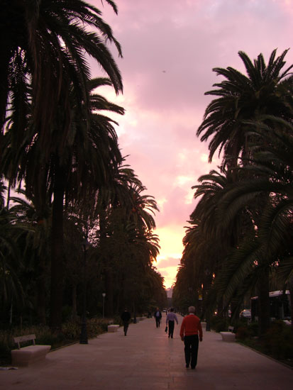 Weiter durch die Gassen der Altstadt. Musikanten an vielen Ecken, dann stand ich auf einmal vorm Picasso Museum. Natürlich musste ich rein. Zunchst hieß es anstellen. Die Gepäckaufbewahrung hatte wohl nur begrenzte Kapazität. Nachdem meine Tasche durchleuchtet war, wurde ich auch meine Camre los. So schaute ich mir die Bilder und sonstigen Picasso Kunstwerke entspannt ein. Ich schickte eine SMS an meinen Bruder. Er war schon am Strand. Ich ging auch in Richtung Strand, kam aber an einem anderen an – mehr nordöstlich statt im Süden. Ein recht langer Weg, die Sonne ging langsam unter. SMS hin und her – wir konten uns nicht treffen.
