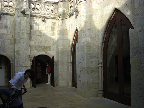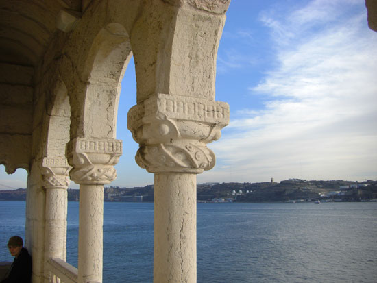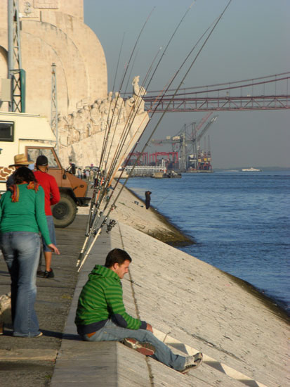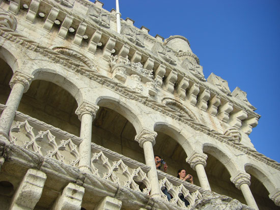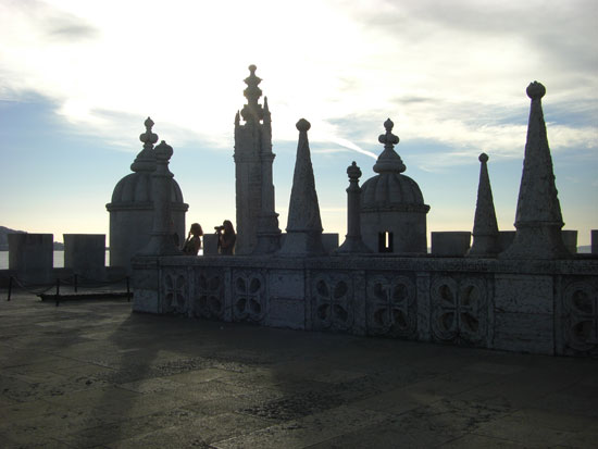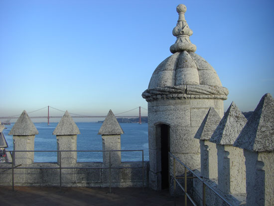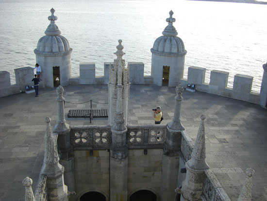 Wir saßen etwas vorm Torre Belém. Ich ging dann alleine rein – €3. Der Turm wurde zur Verteidigung genutzt. Im Keller war ein Gefängnis für politische Gefangene. Die 4-5 Etagen darüber waren alle per Wendeltreppe erreichbar. Super Aussicht auch zur Brücke. Ich fand’s super.