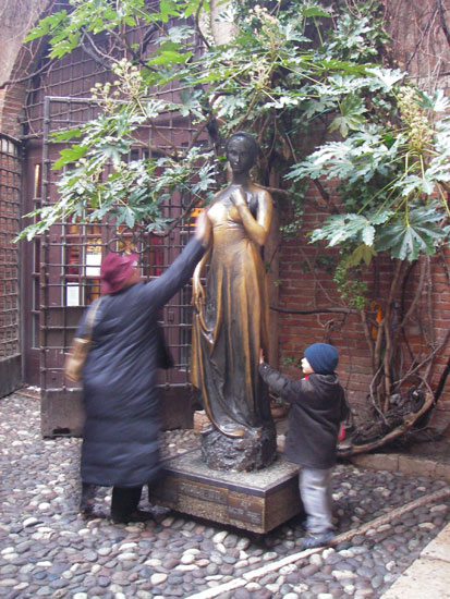 Am „Haus von Julia“ – ja Romeo & Julia – musste ich natürlich die Brust von Julia anfassen. Hihi.. Das dauerte eine ganze Weile, bis ich endlich an der Reihe war. Fast jeder machte das wohl – meistens mit Photobeweis. Der Balkon von Julia ist auch ein Wahrzeichen und sah auch schön aus.
