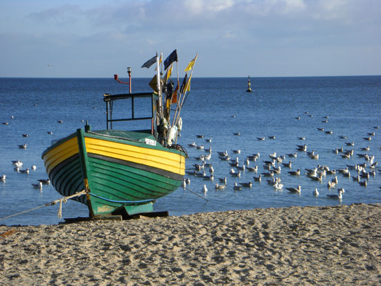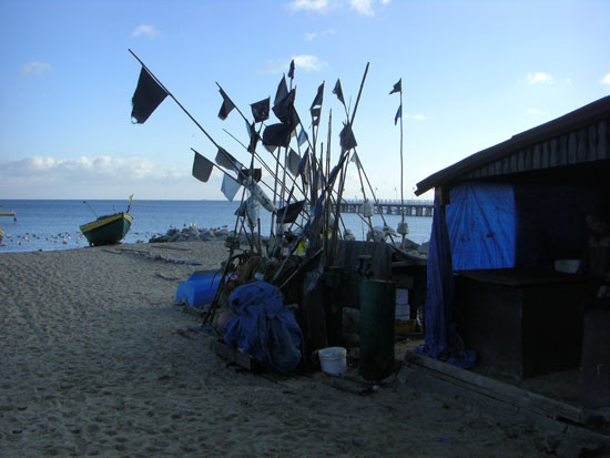 Crepes zum Frühstück, dann zum Strand von Sopot. Das Wetter war herrlich, also eine kleine Strandwanderung nach Gdynia.