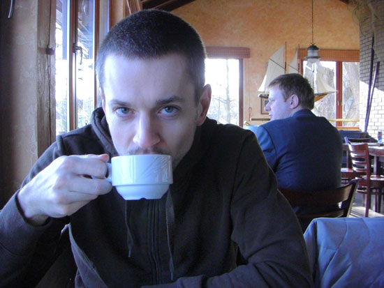 Ein paar Leute waren auch unterwegs. Gegen Mittag ein kleiner Imbiss in einem Fisch-Restaurant. Heute mussten Pfannkuchen gegessen werden. Ich hatte außerdem noch die Suppe des Tages – Borschtsch.