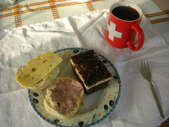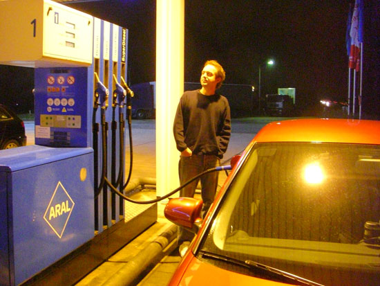 Großes Frühstück. Mein Bruder kam gegen halb 4 mit ’nem Audi A3. Ich packte meine Sachen. Um 4 war ich fertig. Es geht wieder eine größere Reise los. Die Verabschiedung dauert da auch etwas länger.