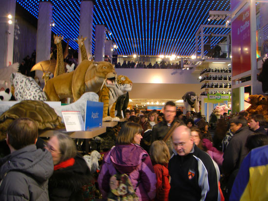 Etwas bewölkt und leicht regnerisch auf der Wetterseite. Ich sah das erste Mal FAO Schwarz von innen. Ein großer Spielzeugladen mit ’nem ganzen Plüsch-Zoo. Besodnere Attraktion war ein Klavier im Boden, auf dem man tanzend Musiken spielen kann. Der Apple Store daneben durfte auch icht fehlen. Das iPhone ist schon ganz OK..vielleicht wenn in ein paar Wochen der $100 Price Drop kommt.