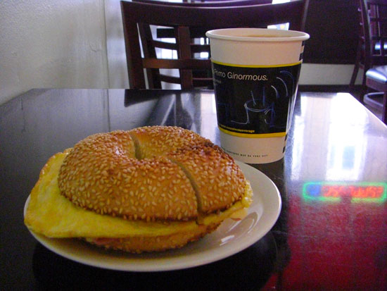 Ich stand etwas später auf. Im Café Paris auf der anderen Straßenseite wartete ich ein wenig auf meinen Breakfast Bagel. Der war dann aber auch gut..mit Cappuccino.