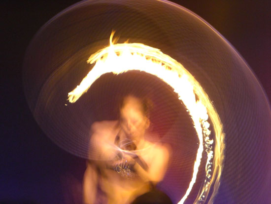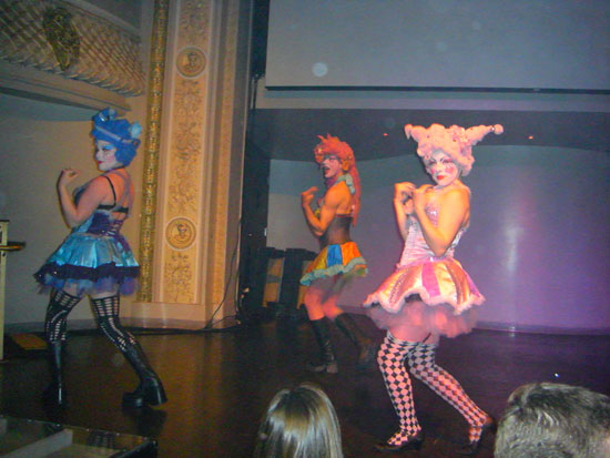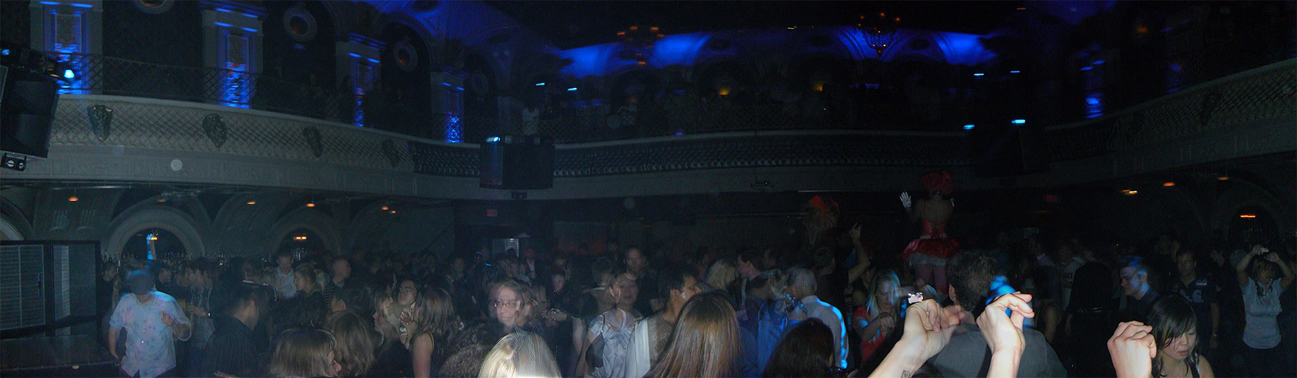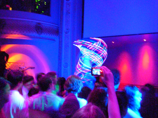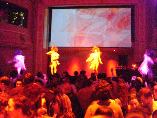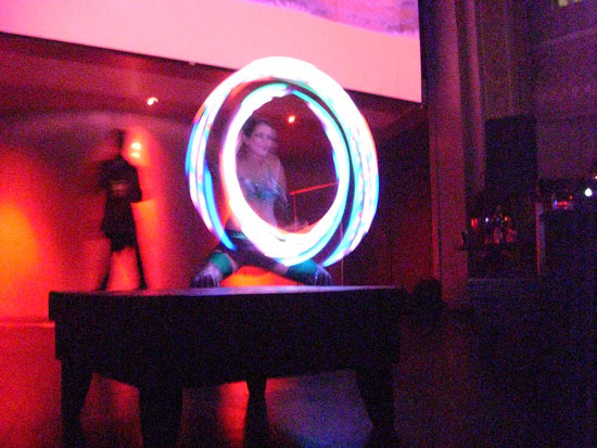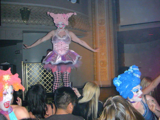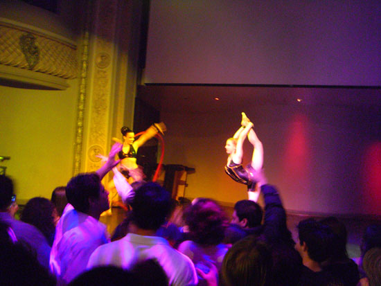 Es war noch leer, füllte sich dann aber nach 11 schlagartig. Es traten in kurzen Abstnde eine Menge Artisten und verrückte Leute auf. Wirklich lustig, wie die hier das Unterhaltungs und Gogo Programm gestalten. Da wurde mit Feuer gespielt, Leute durch die Luft gewedelt oder einfach nur getanzt. Felix Housecat fand die ganze Ablenkung dann etwas komisch. Er sagte irgendwas, das er als DJ gebucht wurde und nicht als Musik für ’nen Zirkus. Er traf das eigentlich auf den Punkt. Die Unterhaltung war so gut, dass man eigentlich gar nicht tanzen brauchte. Viele hatten ihre Cameras draußen, wie ich, und filmten einfach den Spaß.