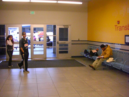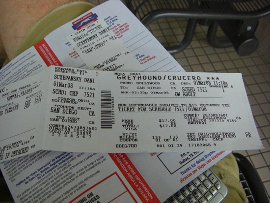 Nach 11 sollte ein Bus nach SD fahren. Ich winkte mir ein Taxi her. Die Hollywood Greyhound Station war eigentlich gleich um die Ecke. Der Taxifahrer meinte, dass da eigentlich keine Busse mehr fahren. Ich sprang kurz rein, fragte nach – alles OK. Ich kaufte das Ticket ($17) und wartete eine Weile.