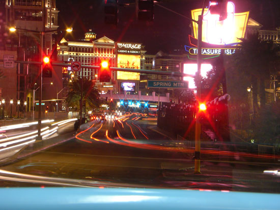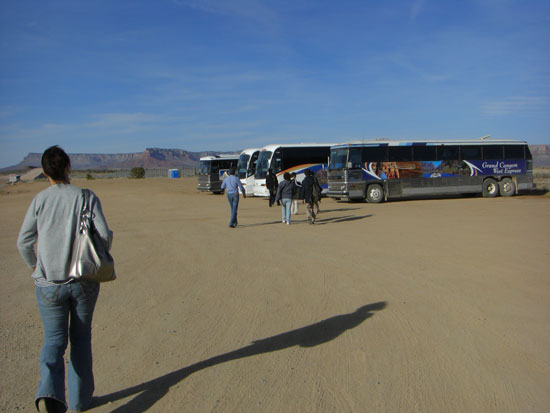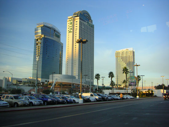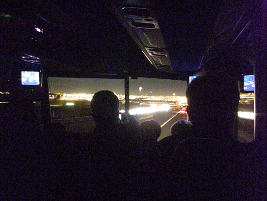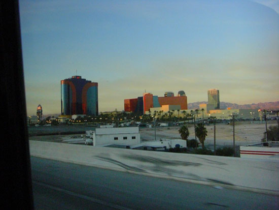 Wir wurden zu einem großen Sammelpunkt am Stadtrand gefahren. Die Sonne ging auf, die Hotels blitzten auf.