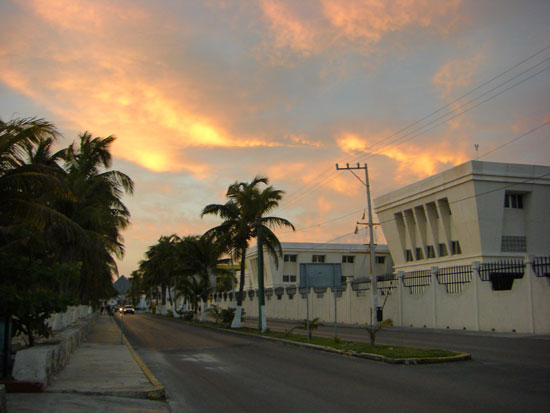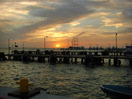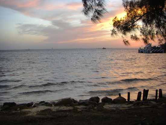 Mit der Fähre war ich schnell drüben zu einem schönen Sonnenuntergang. Mit dem ganzen Gepäck lief ich erst etwas ziellos umher, fand dann doch ein Taxi, was mich zum Hostel brachte. Die Zimmer waren einfach, die Betten quasi direkt Stein und Zement. Mit Matrazen und viel Sand war das nicht so sauber – Maxiko eben.