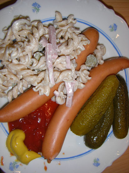 Noch ein später Imbiss mit Wienern und Nudelsalat. Schluss wieder erst nach 6:30.