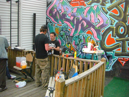 Auf der Dachterasse des Hostels gab’s ein BBQ. Für $7 all-you-can-eat. Ich aß zwei Burger und ein halb-rohes Hühnchenbein. Alles ganz OK, wobei ich auch mit ’nem Südafrikaner redete, der fast ein halbes Jahr in Aspen mit Snowboarden verbrachte.