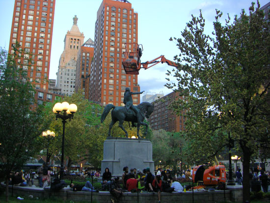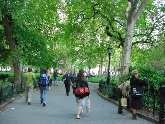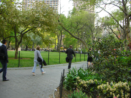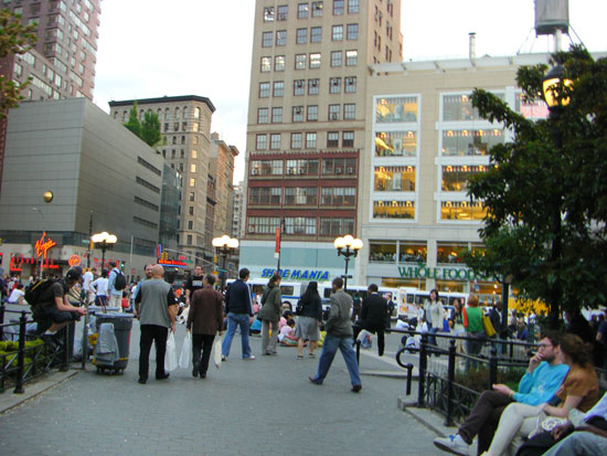 Wir spazierten runter zum Union Square. Ein sehr guter Burger brachte Kalorien. Auf dem Union Square liefen lustige Leute rum. Einer, der wohl auf Drogen war, hatte die Pläne des Freedom Towers im Müll gefunden, kam in die Zeitung und war etwas pissed, dass er für die Titelstory keine Kohle bekam.