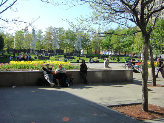 Ich legt mich in einem kleinen Wiesen-Stück auf ’ne Bank auf ’ner Plattform. Bissel Bedenken, dass ich wieder Sonnenbrand bekomme, also weiter Richtung Downtown.