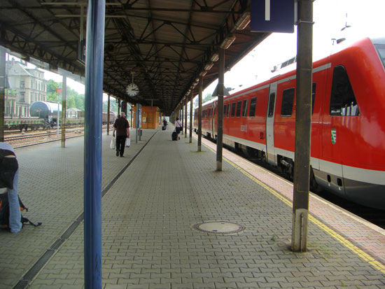 Beim Busfahrer bezahlte ich wohl ’nen EUR zu viel aber ich war zu müde, um mich zu sorgen. Dann 14:01 von Altenburg nach Gößnitz. Dort ist der längste Bahnsteig Deutschlands. Das glaube ich gern. Eine Bockwurst hätte mir mehr genützt. Dann kam ein Zug, der vordere Teil wollte nach Zwikke, der hintere nach Chemnitz. Richtigen Teil erwischt und bald in Chemnitz. Nur reichlich 1:30 insgesamt von Altenburg und dann ins Büro.