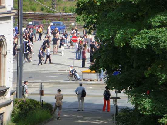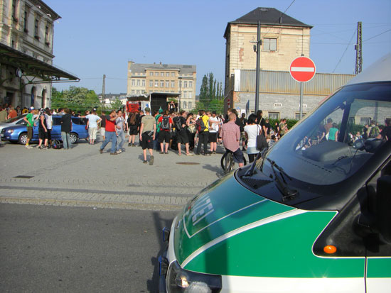 Die zogen dann wohl mal um den Block. Ich ging dann mal raus und schaute mir das aus der Nähe an. Komische Leute halt und viele viele Polizisten.