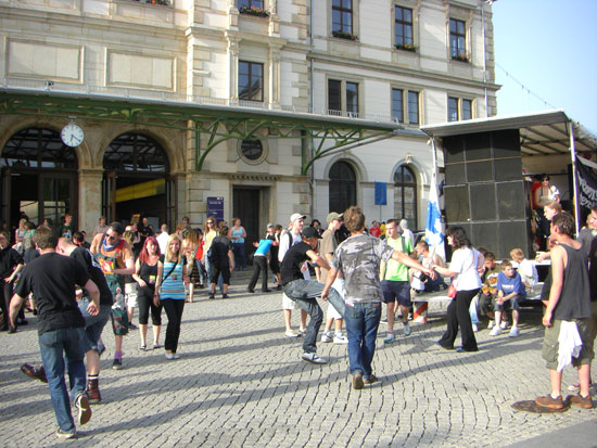Ein paar Linke Gabba Freunde machten heute eine Demo gegen ’nen Laden auf der StraNa. Der Shop verkauft irgendwelche Army-Klamotten und auch „Thor Steiner“ – Sachen, die wohl bei Nazi-Prolls beliebt sind. Also wird mal bissel Radau gemacht. Ich hatte Wiesbaden am Telefon und der Krach war vor der Tür.
