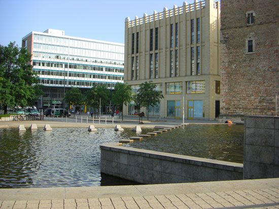 Ich ging ’ne Runde zur Galerie RT. Ein Eis war auch drin. Ich setzte mich an den Springbrunnen vor der Stadthalle. Sehr schönes warmes Wetter heute.