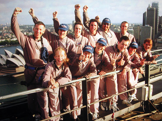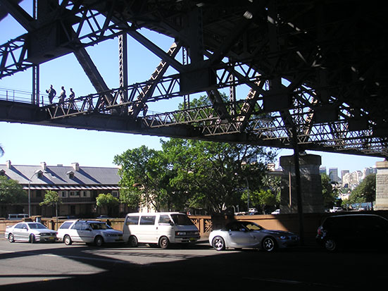 Wenn man in Sydney ist, muss man den Bridgeclimb unbedingt machen. Es gibt zwar preiswertere Späße, dort oben ist es aber einzigartig! Das Photomonopol hatte der Guide. Er knippste alle und dann ging es wieder zurück. Insgesamt dauerte es wirklich 3 Stunden, die Zeit war schnell vorbei. Viele lustige Geschichten um die Brücke wurden erzählt. Netter Spaß und alle ware happy. Ich holte mir ein Erinnerungsbild von vieren, das Gruppenbild war inclusive. Auf dem Weg zur Town Hall aß ich noch was Koreanisches. Vor der Metro ging ich noch was den nächsten Trip einkaufen. Mit Müsli-Riegeln kann kurzen Hunger gut überbrücken.