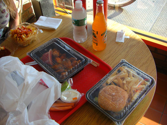 Dann in eine Tierhandlung für Katzenfutter. Der (mein) Schlüssel wurde wieder geholt und es wurde spät. Ohne großen Hunger hatten wir im „Wing Wagon“ doch eine ganz gute Portion von Chicken Wings und ich einen extra Burger. Bei Key Food wurde ordentlich eingekauft. Alles nicht ganz so günstig bei zu großer Auswahl. Besonders die Cornflake-Variationen sind irre.