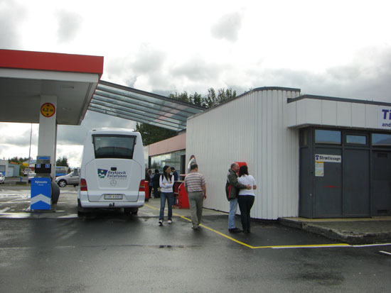 Wir wurden zum BSI Busterminal gebracht, wo ich die 21.000 ISK zahlte. Ein nicht gaz günstiger Trip aber eben auch was Besonderes. Für die lange Tour wird vom Veranstalter kein Essen zur Verfügung gestellt, also kaufte ich mir noch was. Etwas nach 9 ging es los. Die zwei Finnen waren auch dabei. Der keliene Bus war bis auf den letzten Platz gefüllt. Hinten in der letzten Reihe waren wir vier und Schulter an Schulter quetschte es ganz schön.