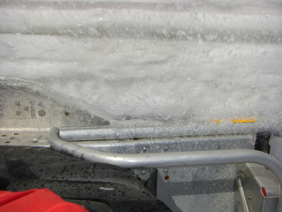 Eine Taiwanesin, die ein einzelnes Schneemobil hatte, fragte uns, ob sie bei uns mitfahren könnte. Sie war etwas ausgepowert. Ich nahm ihr Schneemobil und sie hinten drauf mit. Damit konnte der Amerikaner auch zurück alleine fahren. Mit Vollgas ging es echt heftig auf der Eispiste wieder bergab. Ich hatte viel Spaß. Die Fahrt war natürlich zu kurz.