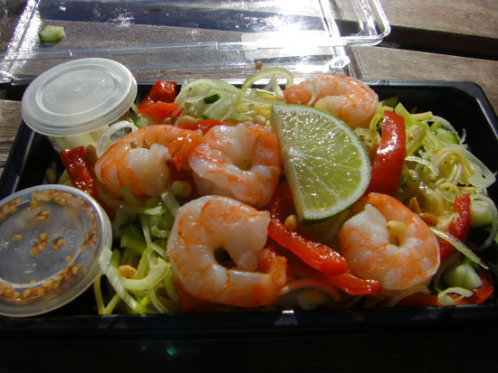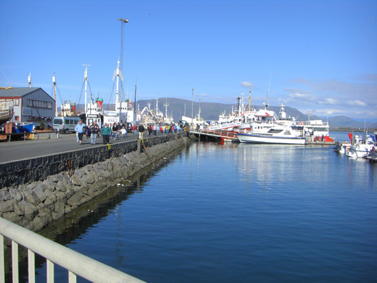 Ich arbeitete etwas, versuchte die Polen zum Arbeiten zu bewegen und wollte auf Puffin Island. Es wurde nach 15:30 und ich ging los. Das Wetter war herrlich. Strahlend blauer Himmel und schön warm. In einem Suhsi Laden kaufte ich mir die Rolle der Woche. Das Mädel war etwas erstaunt, dass ich gar nicht wissen wollte, was es denn sei und ob ich „scharf“ mag. Ja, und die Rolle war auch super. Am Hafen sah ich, dass die Wal-Touren 17:00 waren und nicht die Puffins. Die Puffin Touren dauern nur eine Stunde und bei Puffinexpress sollte die nächste um 16:30 starten. Ich kaufte mir bei Puffin Express ein Ticket und hatte noch Zeit für ’nen Salat. Dann war ich aber der einzige Kunde und sie fahren erst ab 3 Leuten. Am Nachbarstand startete eine Waltour, die jedoch mit einem großen Schiff stattfand, das nur 50m an die Insel rankommt. Leider wurde es also nichts mit den Puffins und ich bekam mein Geld zurück.
