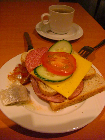 Ich kam also nach 4 wieder ins Hotel zurück. Schnell sprang ich unter die Dusche, wechselte die Klamotten und checkte kurz nach halb 5 aus. Im Frühstücksraum saß einer. Ich stopfte mir schnell zwei Toasts und sonstiges in den Mund. Der Hunger war damit erst mal weg.