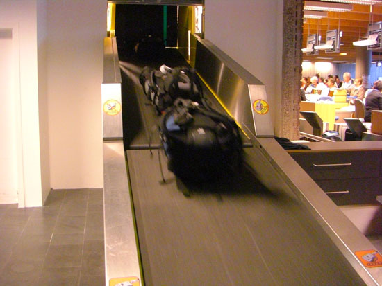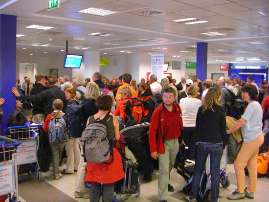 Genausoviel Trubel auch aufm Flughafen. Viele Franzosen und natürlich auch Deutsche standen herum. Mit meiner Buchungsnummer bekam ich am Check-In Terminal nicht nur die Bordkarte sondern auch den Gepäckkleber. Ich stand dann brav erst mal in der Reihe zum Baggage Drop-Off, wuchtete meinen Rucksack dann aber doch auf das „Odd-Sized“ Band. Da verschwand der Rucksack, ohne, dass jemand anderer Hand angelegt hatte. Na hoffentlich kommt der auch an…
