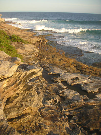 Auf dem Weg nach Bronte (?) läuft man an interessanten Sandsteinen vorbei. Das sah aus wie an der Rose Bay, nur viel mehr und größer.