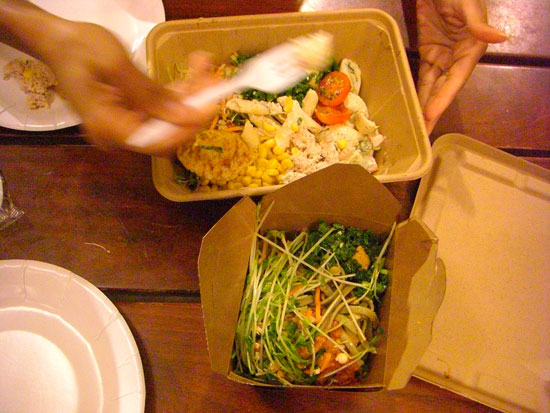 Rückzu gings zum Union Square und dort zum gesunden Abendessen bei Wholesale Food. Das Pfund Essen kostet $7.99. Zur Auswhal am riesigen Buffet gibt’s alles gesunde organische. Eine Menge Kassierer – um die 20 bestimmt.