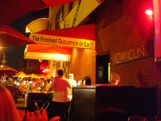 Mit der Metro ging’s in’s Village. Dort bei Caliente ein kleines Essen. Für $20 bekam man eine Platte mit Mini Burritos, Burgern und Shrimps und so. Das war genug für den kleinen Hunger. Auch heute zum Mittwoch waren gut Leute unterwegs.