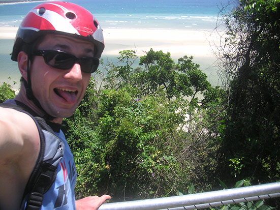 Das Früstück war gut und süß. Ich nahm mir gegen 12:00 ein Bike und radelte Richtung Leuchtturm. Der thront gut sichtbar vom Strand hier in der Bay. Die Strecke nach oben war seh schön. Überall Traumstrände. Nur mit dem Fahrtwind war die Hitze auszuhalten.