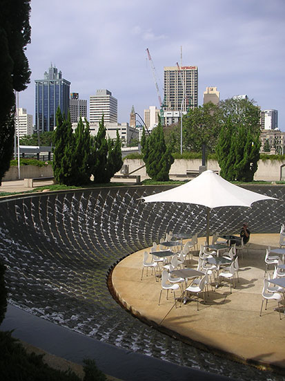 Neben dem Brisbane River liegt die City Beach. Die besteht aus zwei großen Pools und für die Füße kam das genau richtig. Ich saß und trocknete ein wenig herum, schaute den Fähren zu und lief weiter zur Goodwill Bridge. In der Ferne hörte ich schon eine Weile laute Musik. Rockkonzert oder sowas. Ich ging weiter zur Domain und kam nach der Brücke Nähe Botanischer Garten ‚raus.