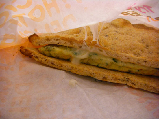 Ich schrieb ein paar emails zu laufenden Projekten und blieb mit sonstigen Websachen bis Abends am Rechner hängen. Unser Wii Spiel soll nicht erst durch die Pre-Certification sondern gleich ins Approval. Das ist bissel dumm, da es noch massenhaft Sachen zu verbesern gibt. Nach 19:00 ging ich zur 86th und holte mir bei Dunkin‘ Donuts ein Egg Flatbread mit Café. Das schmeckte mit Ketchup ganz gut.