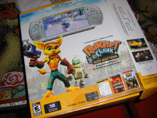 Dann wollte ich zum GameStop. Ich fragte, ob sie die PSP3000 schon hätten und ja. Also kaufte ich sie. Um $216 mit Tax. Das Bundle hat auch „Ratchet & Clank: Size Matters“ mit dabei. Besonders interessiert war ich jedoch an Skype und dem Online Store. Mal sehen, ob man da wirklich einfach so was kaufen kann.