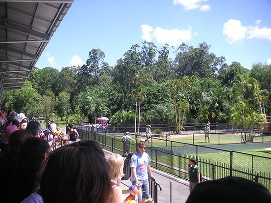 Die Fahrt ging zum Australia Zoo. Wir hatten ja mal Spiel Crocodile Hunter Pinball angefangen. Der Croc Hunter (Steve Irvine) hat eine eigene erfolgreiche TV Show auf dem Discovery Channel. Da jagt er Crocodile, Schlangen und was sich sonst so finden lässt. Das Spiel wurde leider nie beendet, ich hatte Verluste. In seinem eigenen Zoo ließ sich Steve Irvine heute nicht blicken.