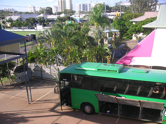 Der Bus startete mittags in Brisbane. Ich hätte gut noch einen Tag hier verbringen können aber je mehr Tage ich spare, desto besser.